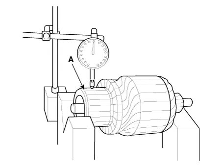 Check the commutator diameter. If the diameter is below the service limit, replace the armature.