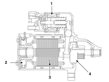 | 1. Solenoid 2. Brush assembly 3. Armature 4. Over runing clutch |