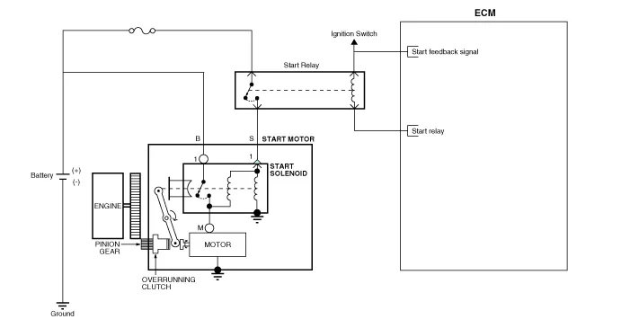 Description and operation Description The starting system includes the battery, starter, solenoid switch, ignition switch, inhibitor switch (A/T), clutch pedal switch (M/T), ignition lock switch, connection wires and the battery cable.