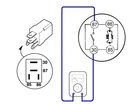 Check for continuity between the terminals (30 and 87) using an ohmmeter.