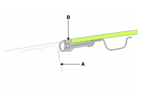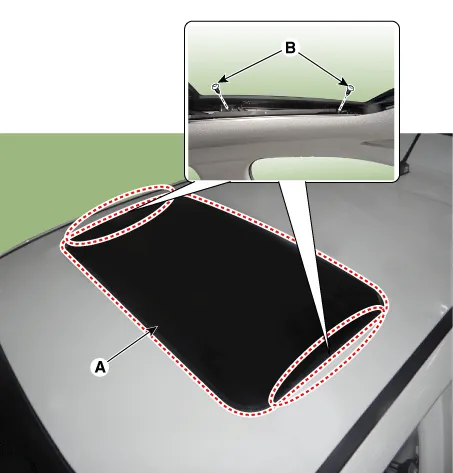 Inspect the step height between the roof panel (A) and the glass weatherstrip (B) and then adjust it if necessary.