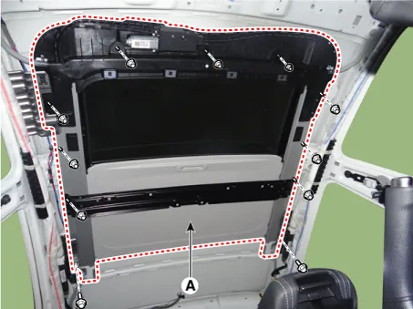 Remove the sunroof assembly (A) after loosening the nuts and bolts.