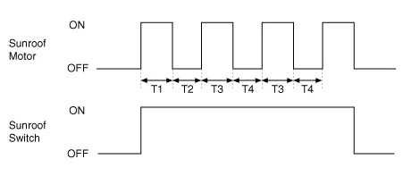 In order to protect the overheated sunroof motor by continuous motor operation, the sunroof ECU controls the Run-time and Cool-time of motor as followings;