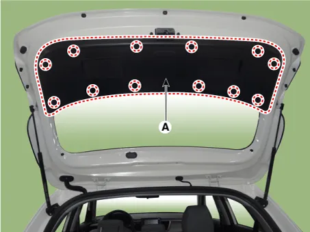 Remove the tailgate trim (A) by using the remover.