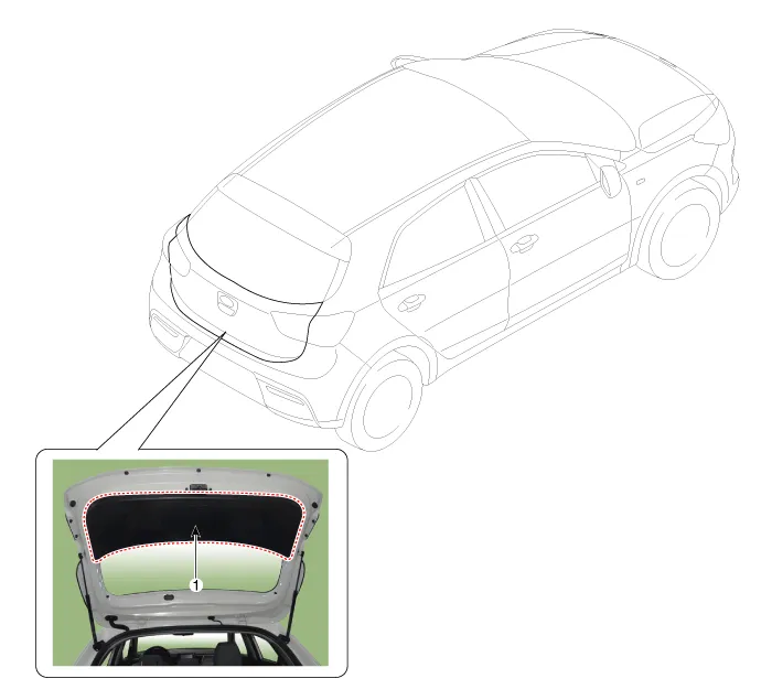 Components and components location Component Location (5Door) 1. Tailgate Latch Repair procedures Replacement (5Door) Put on gloves to protect your hands.