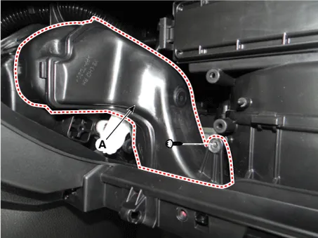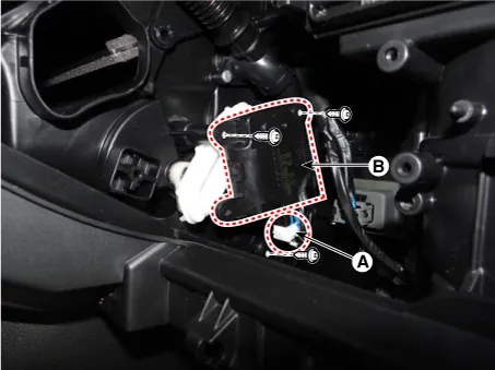 Disconnect the connector (A) and then remove the temperature control actuator (B) after loosening the mounting screws.