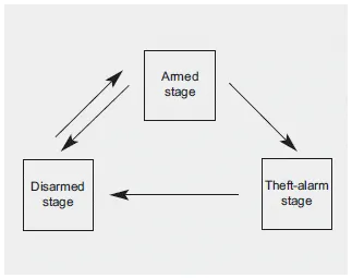 This system is designed to provide protection from unauthorized entry into the vehicle. This system is operated in three stages: the first is the "Armed" stage, the second is the "Theft-alarm" stage, and the third is the "Disarmed" stage. If triggered, the system provides an audible alarm with blinking of the hazard warning lights.