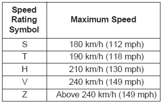 The chart below lists many of the different speed ratings currently being used for passenger vehicles. The speed rating is part of the tire size designation on the sidewall of the tire. This symbol corresponds to that tire's designed maximum safe operating speed.