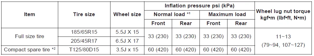 When replacing tires, use the same size originally supplied with the vehicle. Using tires of a different size may damage the related parts or cause them to operate improperly.