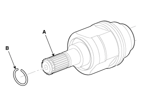 Remove the BJ circlip (B) from the TJ housing (A).