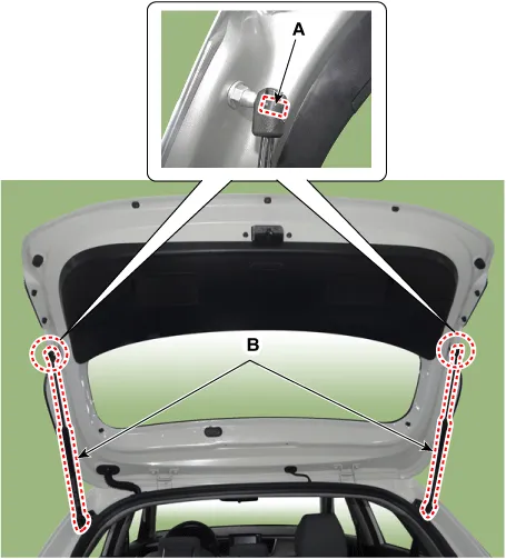 Components and components location Component Location (5Door) 1. Tailgate Latch Repair procedures Replacement (5Door) Put on gloves to protect your hands.