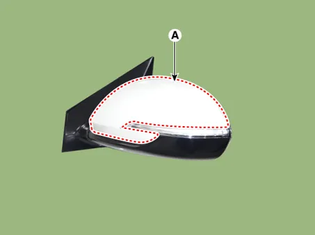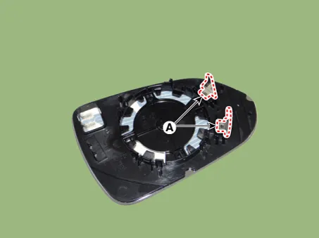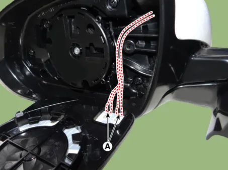 Disconnect the heating connectors (A) from the mirror.