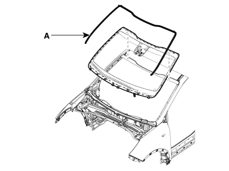 With a knife, smoothly scrape off the old adhesive to a thickness of about 2 mm (0.0079 in.) on the bonding surface around the entire windshield opening flange: