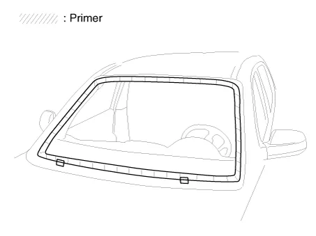 With a sponge, apply a light coat of body primer to the original adhesive remaining around the windshield opening flange. Let the body primer dry for at least 10 minutes.