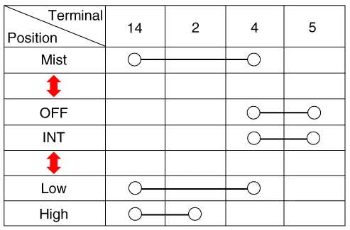 Check for continuity between the terminals in each switch position as shown below.