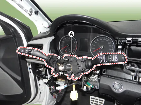 Remove the multifunction switch assembly (A) after loosening the mounting screws.