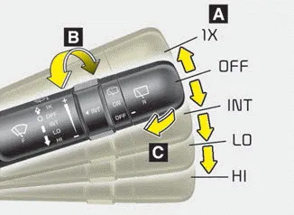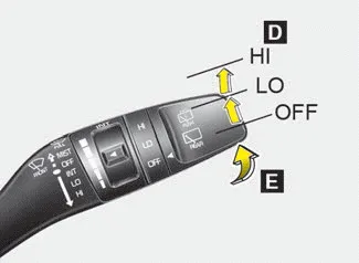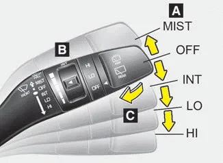 Operates as follows when the ignition switch is turned ON. MIST : For a single wiping cycle, push the lever upward and release it. The wipers will operate continuously if the lever is held in this position.